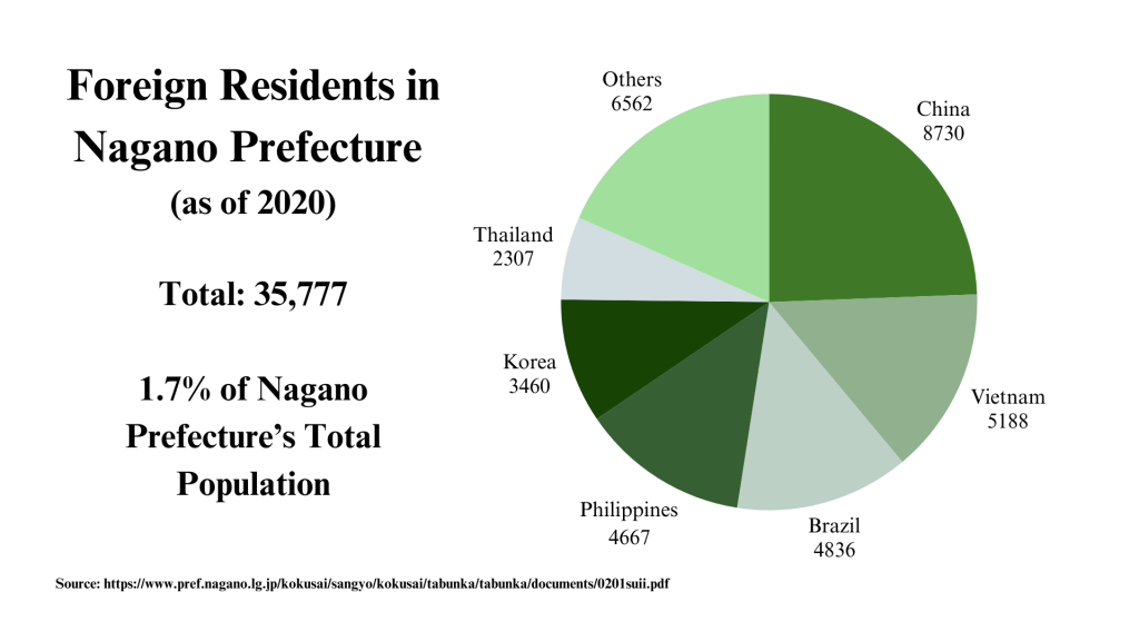 Foreign Resident Population: As of 2020, the number of foreign residents in Nagano was relatively low. This limited population of foreigners means that students may not have the chance to interact with or learn from individuals with diverse cultural backgrounds.
